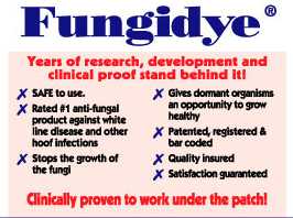 CLINICALLY PROVEN AND TESTED BY VETERINARIANS AND FARRIERS TO BE THE COMMERCIAL PRODUCT FOR THE TREATMENT OF HOOF DISEASE. 2-oz. Soak, 4-oz. and 8-oz. Spray Farrier Science Clinic